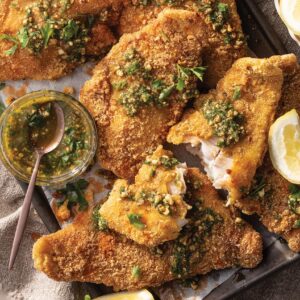 Enjoy crispy Pecan-Crusted Catfish, perfectly seasoned and fried to golden perfection, paired with a zesty Pecan Herb Dipping Sauce for a delightful, flavorful bite.