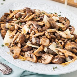 Browning the butter and sprinkling on Parmesan add irresistible flavor to these Roasted Mushrooms.
