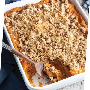 Roasted Sweet Potato Casserole with Coffee-Pecan Streusel
