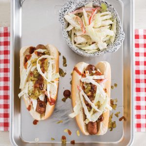 KITCHEN TIP: To kick it up a notch, add chopped barbecue pork, brisket, or chicken to the hot dog toppings.